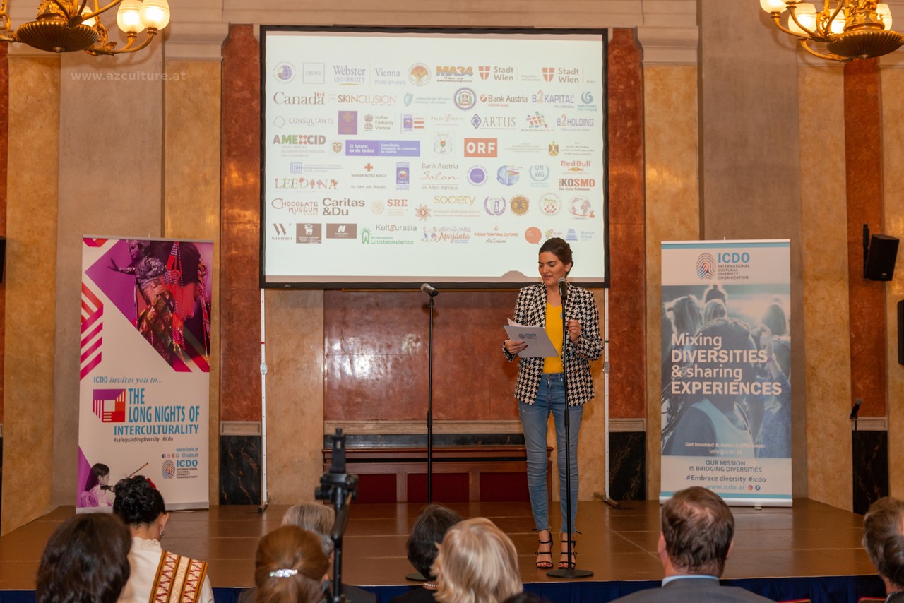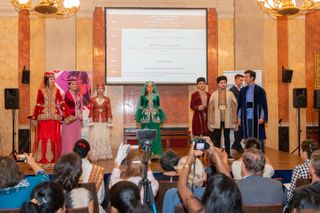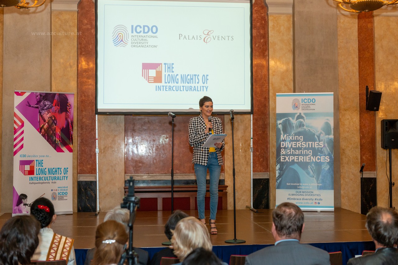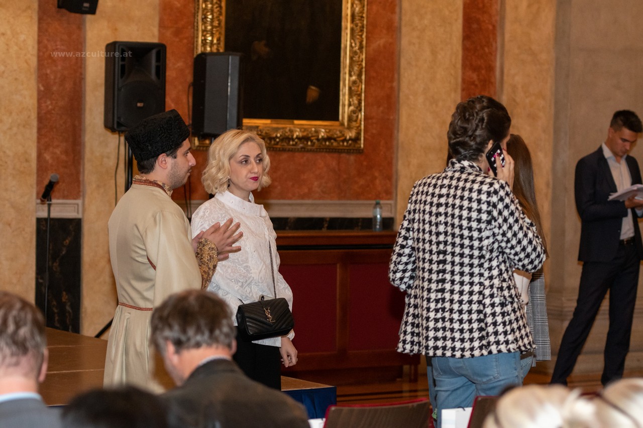 Der Moderator der Veranstaltung informierte die Teilnehmer über die Kreativität von Gulnara Khalilova und den Leiter des "Gulnara Khalilova Mode- und Kunsthauses" und dankte dem Aserbaidschanischen Kulturzentrum für die Unterstützung bei der Modeausstellung der Trachten Aserbaidschans.