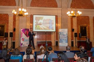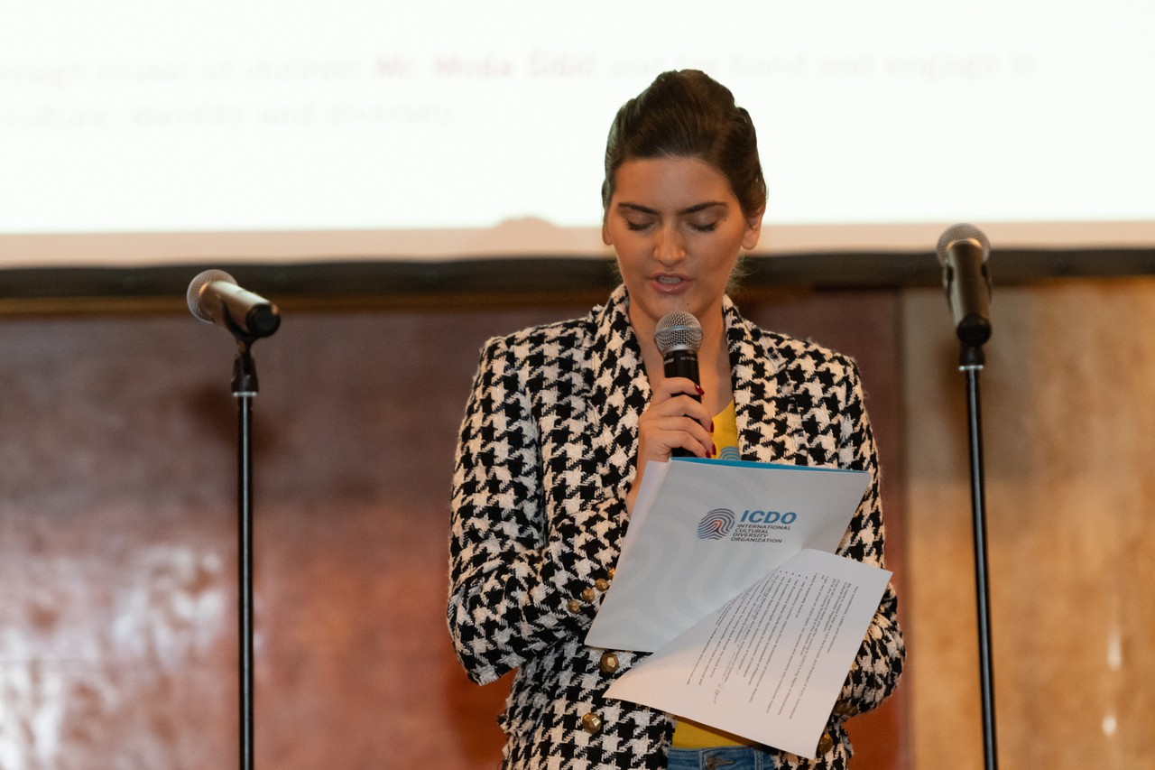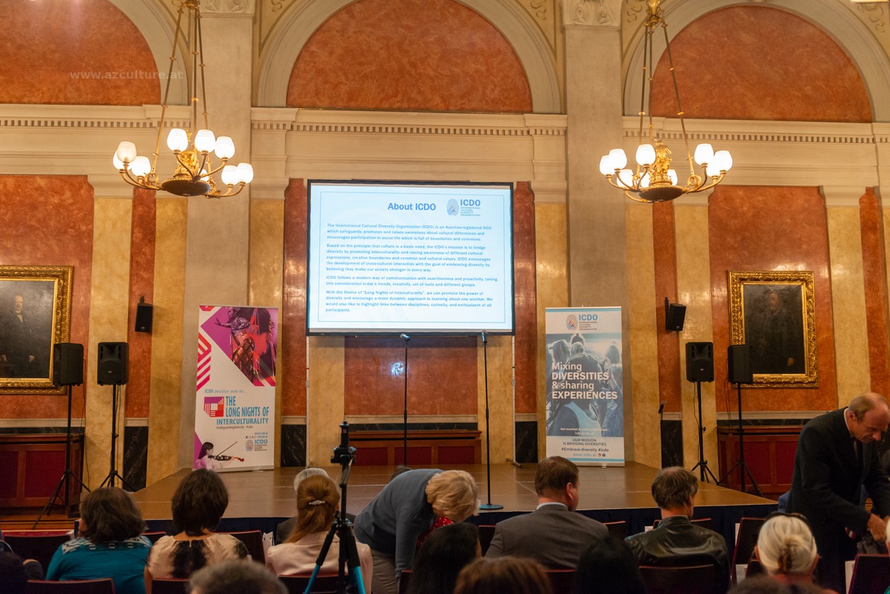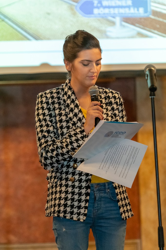 Der Moderator der Veranstaltung informierte die Teilnehmer über die Kreativität von Gulnara Khalilova und den Leiter des "Gulnara Khalilova Mode- und Kunsthauses" und dankte dem Aserbaidschanischen Kulturzentrum für die Unterstützung bei der Modeausstellung der Trachten Aserbaidschans.