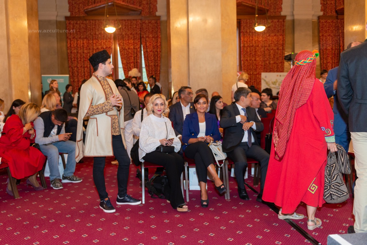 Aserbaidschanische Nationaltrachten wurden auch von Gulnara Khalilova, Leiterin des Aserbaidschanischen Nationalen Bekleidungszentrums, Doktor der Kunstphilosophie, vorgestellt.