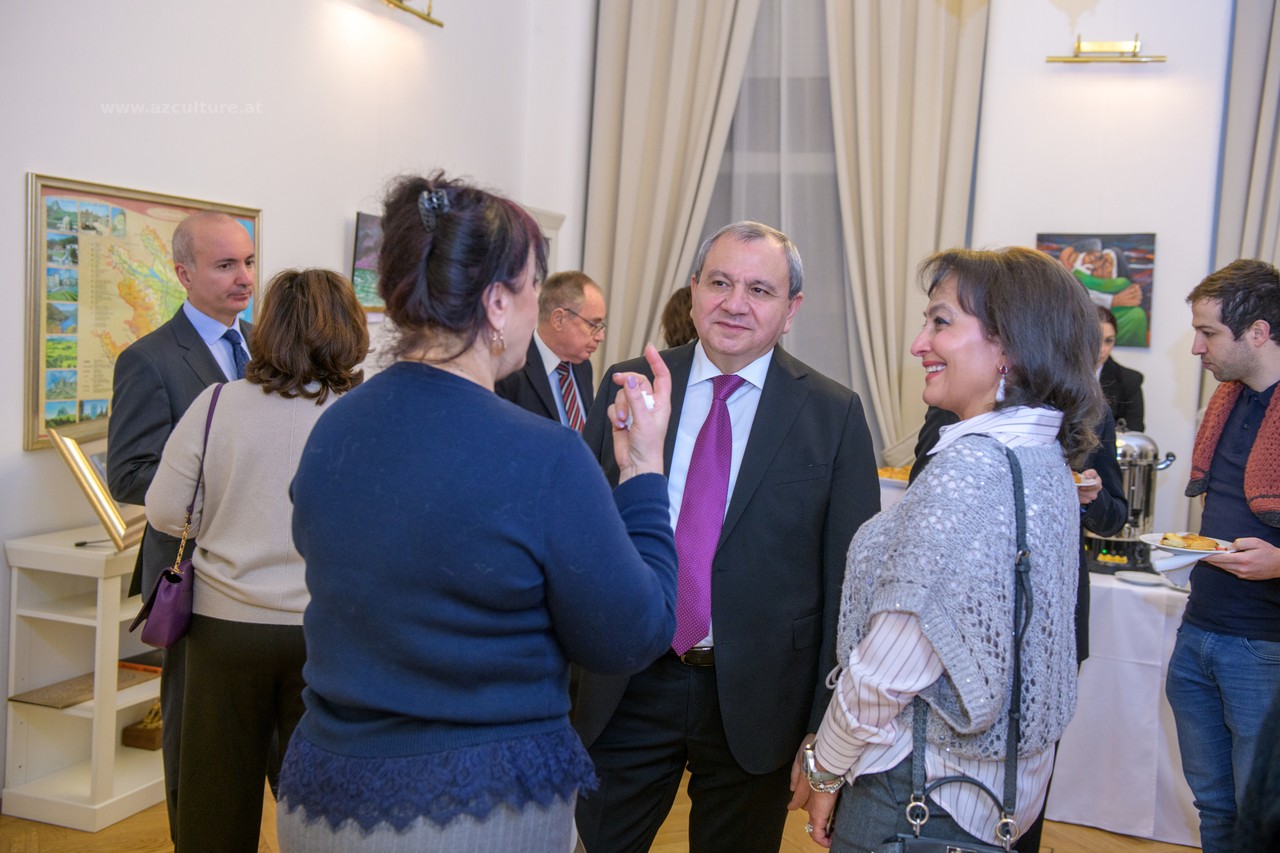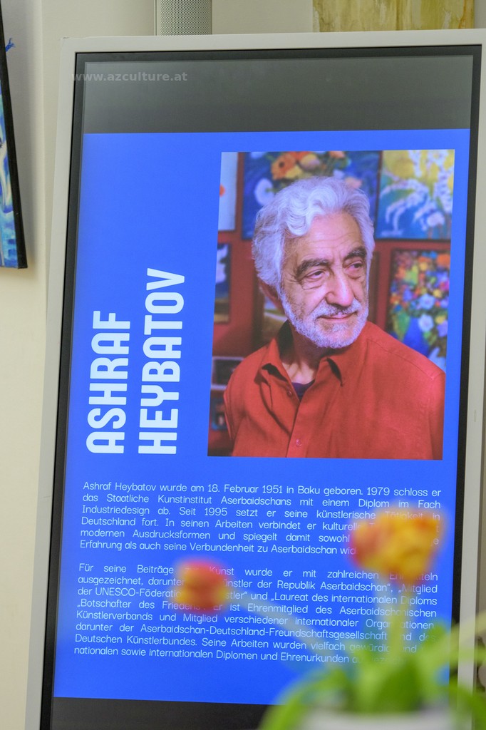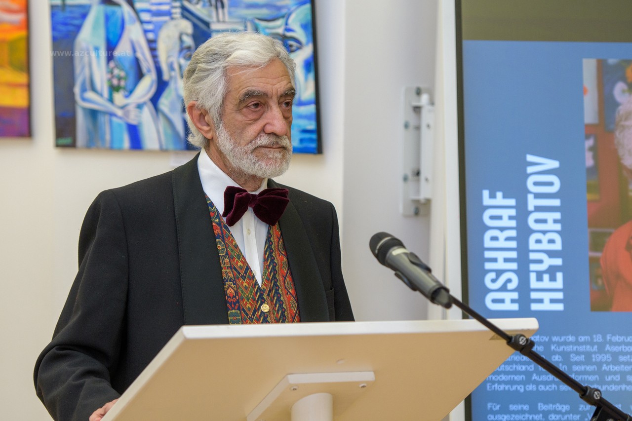 In seiner Ansprache erklärte der Volkskünstler Ashraf Heybatov, dass Themen rund um Aserbaidschan den Kern seines künstlerischen Schaffens bilden. In den letzten Jahren habe er dieses Themenspektrum erweitert und verstärkt Werke geschaffen, die der gesamttürkischen Welt gewidmet sind. Der Künstler, der seine Arbeiten bereits zum zweiten Mal in Wien präsentiert, äußerte anlässlich seines Jubiläums seinen Dank für die Organisation der Ausstellung.